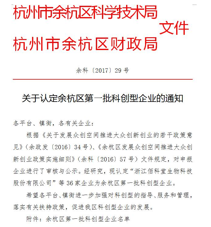 关于余杭区科创型企业的认定,是余杭科技局和余杭财政局共同承办,为了推动和促进科技型中小微企业的科技创新能力建设,加强对科创型企业的指导、服务和管理,落实有关扶持政策,促进余杭区科创型企业的发展,余杭区科技型中小微企业领导小组特对余杭区各企业进行认定,太阳成集团官网被认定为第一批科创型企业。
