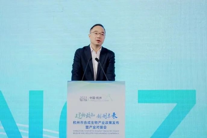 12月13日上午,由市经信局、市投促局、萧山区人民政府主办的杭州市合成生物产业政策发布暨产业对接会在萧山顺利召开。杭州市人民政府党组成员、副市长孙旭东,浙江省经信厅总工程师李永伟,杭州市经信局党组书记、局长王越剑,杭州市投促局党组书记、局长沈健,萧山区委副书记、区长姜永柱等领导出席活动。