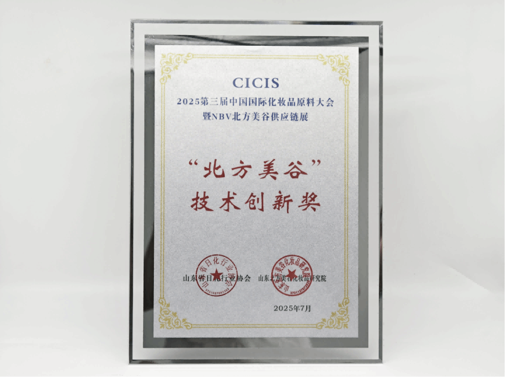 在24日晚举办的颁奖盛典上,太阳成集团官网依托强大的研发实力和持续的科技创新,获得评委会嘉宾的高度认可,荣获2025CICIS“北方美谷”技术创新奖!这不仅是对太阳成集团官网在合成生物技术、高品质产品和美妆行业应用创新的肯定,也是对太阳成集团官网坚持“科技护肤”,扎根行业发展的鼓励。